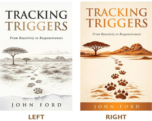 When I posted two cover options for Tracking Triggers, I asked two questions: which cover has the real lion tracks, and which one draws you in?